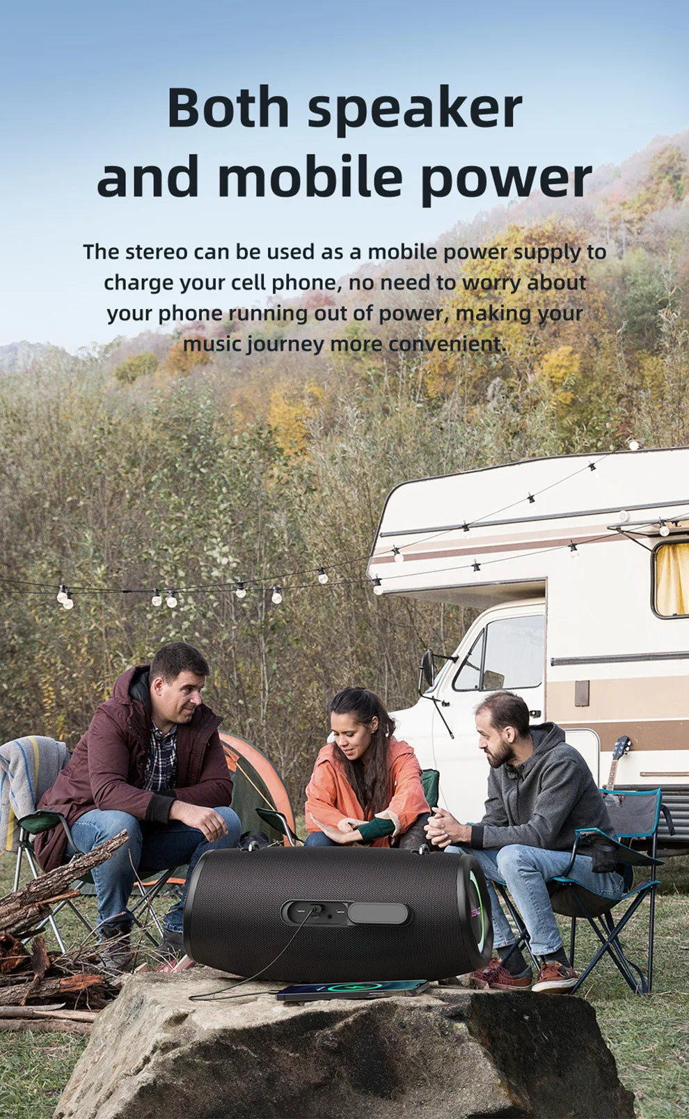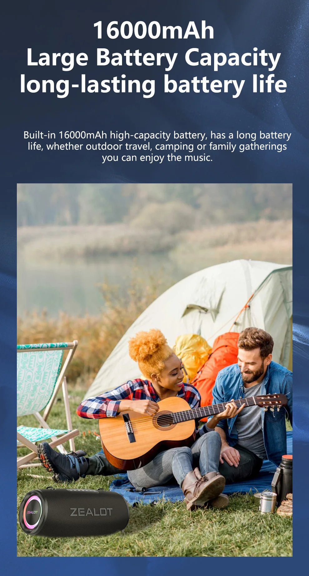 Disfruta de un sonido envolvente y potente con el ZEALOT S87, un altavoz Bluetooth portátil de 80W con subwoofer integrado, diseñado para acompañarte en fiestas, camping y actividades al aire libre.