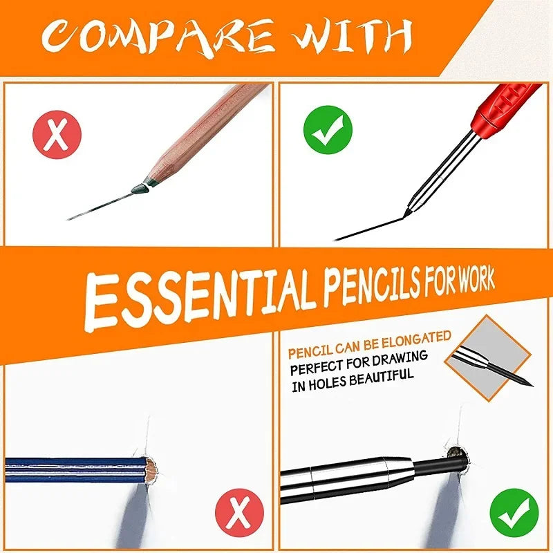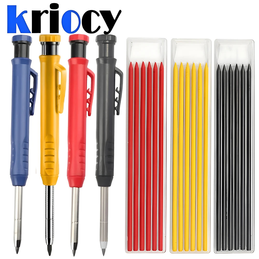 Lápiz de Carpintero Sólido con Minas de Repuesto y Sacapuntas Integrado – Marcador Mecánico para Agujeros Profundos