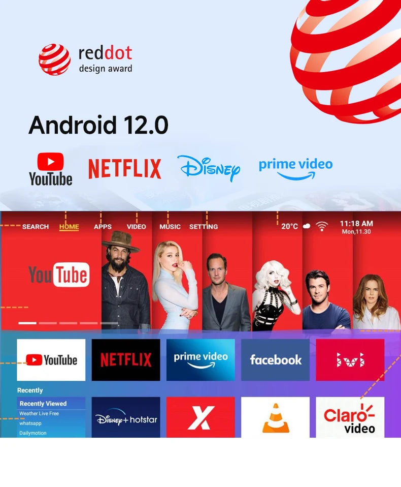 - ⚙️ Sistema Android 12: Acceso directo a aplicaciones como Netflix, YouTube o Prime Video.