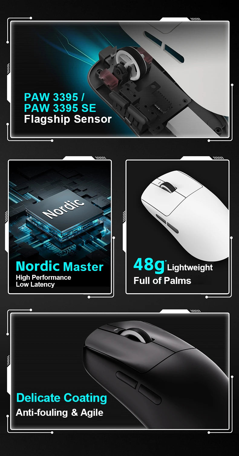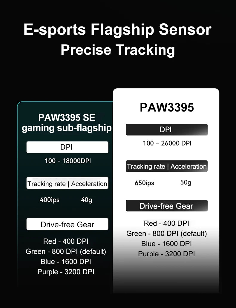 - Sensor PAW3395: alta precisión para juegos competitivos.