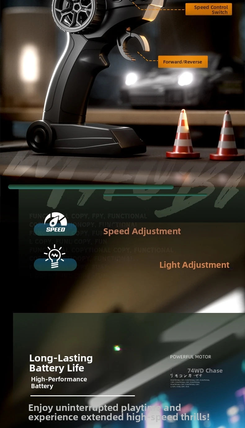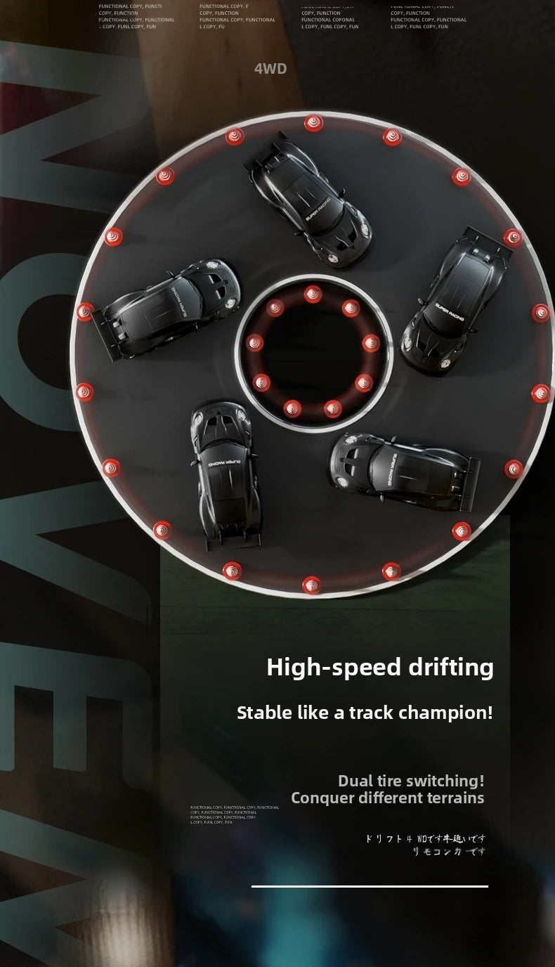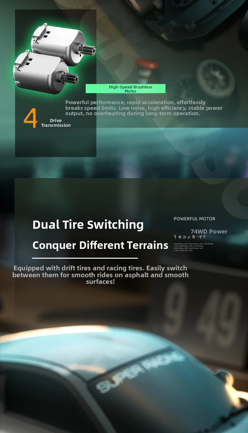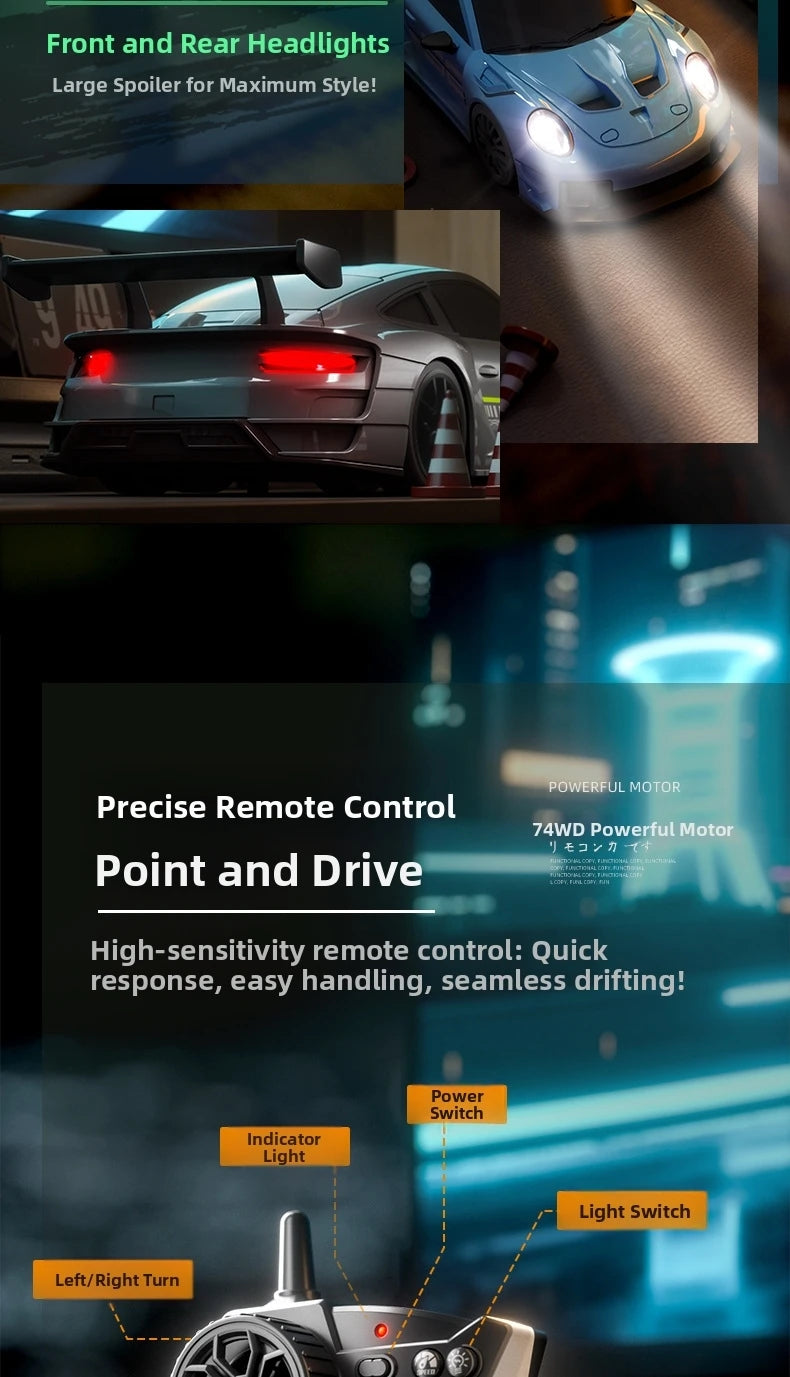 El sistema de control remoto 2.4G garantiza una conducción estable y sin interferencias. Su estructura equilibrada permite realizar derrapes suaves y giros precisos, mientras su velocidad garantiza diversión en pistas interiores y exteriores. Es un modelo perfecto para competir o practicar drift con estilo.
