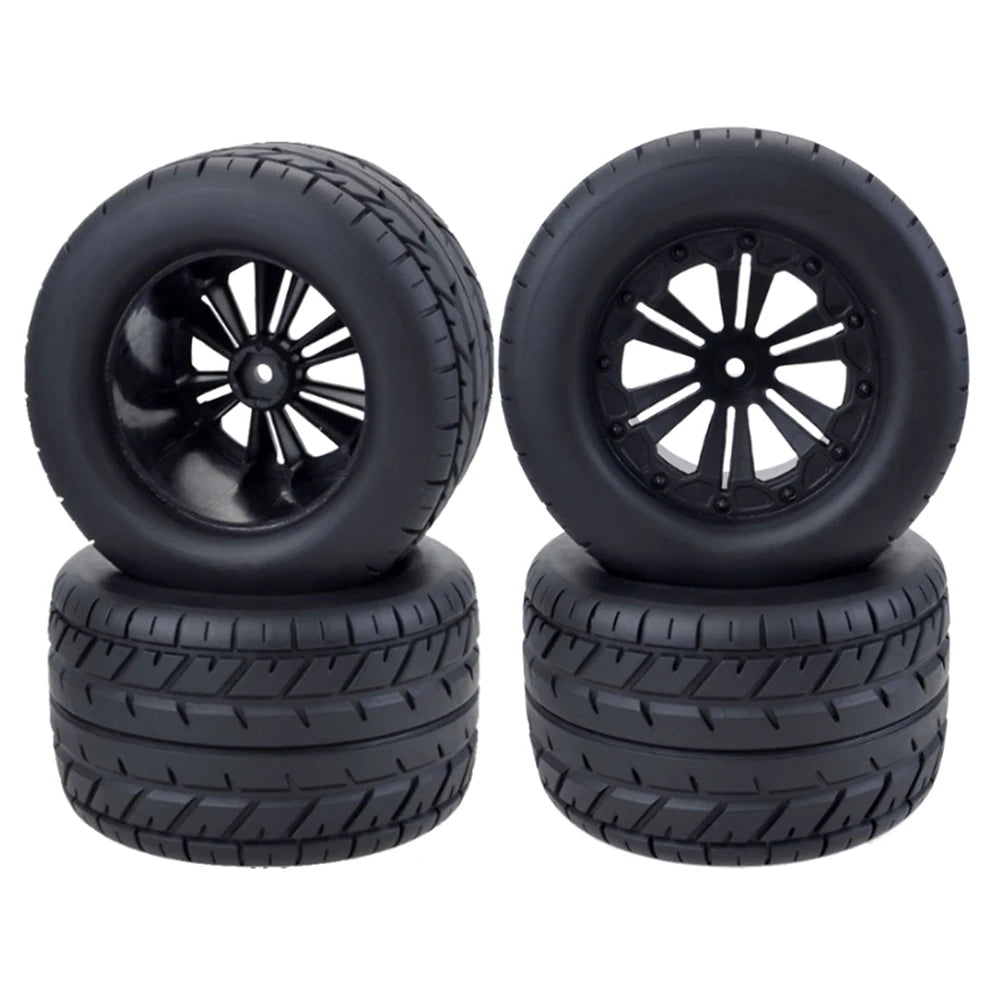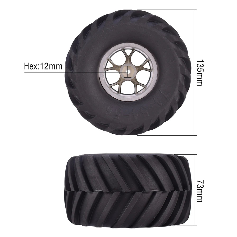 Mejora tu Monster Truck, Buggy o Crawler RC con este set de 4 ruedas de 1/10 escala, disponibles en diámetros de 120mm, 125mm y 130mm, con hub de 12mm. Compatibles con Traxxas, SCX10 y otros modelos de coches RC 1/10, estas ruedas ofrecen durabilidad, tracción y rendimiento en terrenos off-road exigentes.