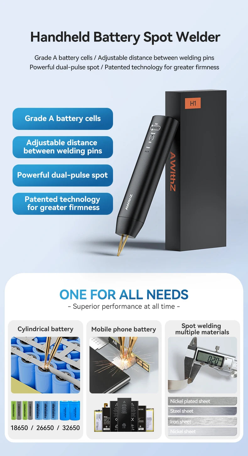Soldador de Puntos Portátil AWithZ – 90 Niveles Ajustables para Baterías 18650
