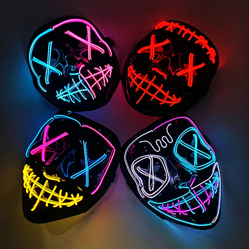 Lleva tu disfraz de Halloween o fiesta de cosplay al siguiente nivel con esta máscara de terror estilo The Purge. Perfecta para fiestas de disfraces, Halloween, masquerade o eventos de cosplay, combina un diseño aterrador con un efecto luminoso impactante.